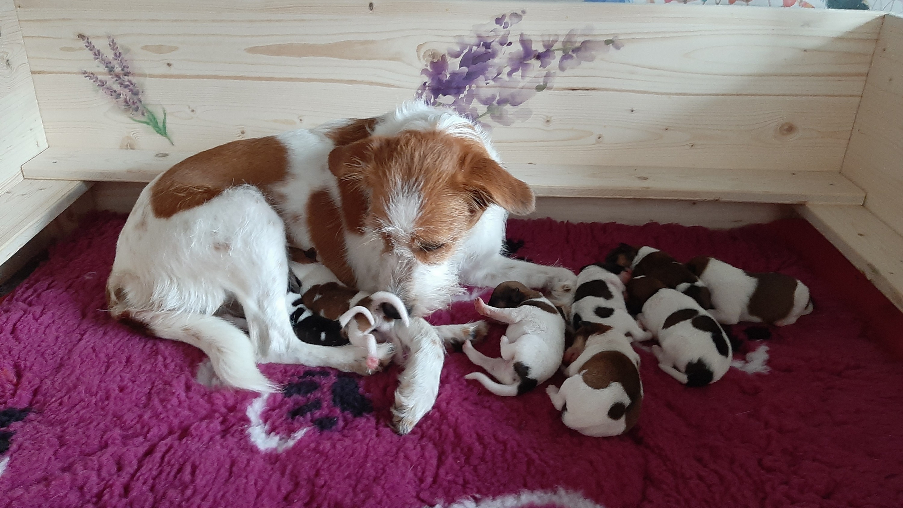 Kein Wunder, dass diese kleine schwere Hündin nicht so einfach herausgeflutscht ist, wie ihre vorangegangenen Geschwisterchen. Aber Nouri hat das großartig gemacht und mit der schnellen Geburt ihrer 8 Welpen eine Meisterleistung vollbracht.